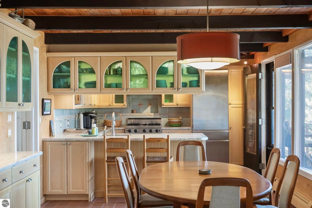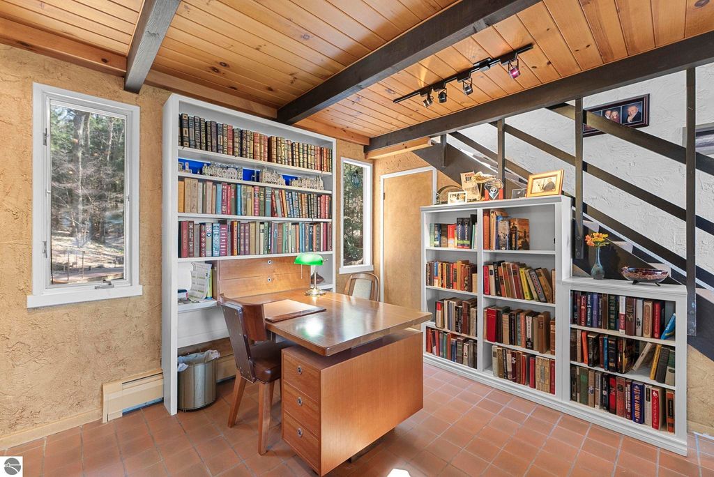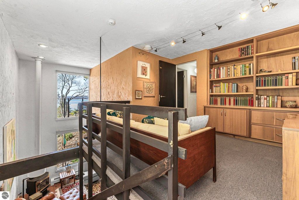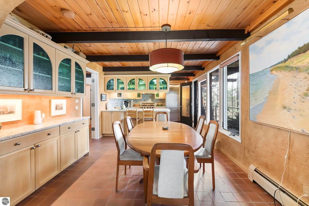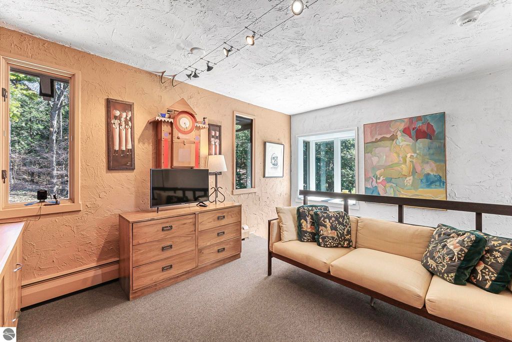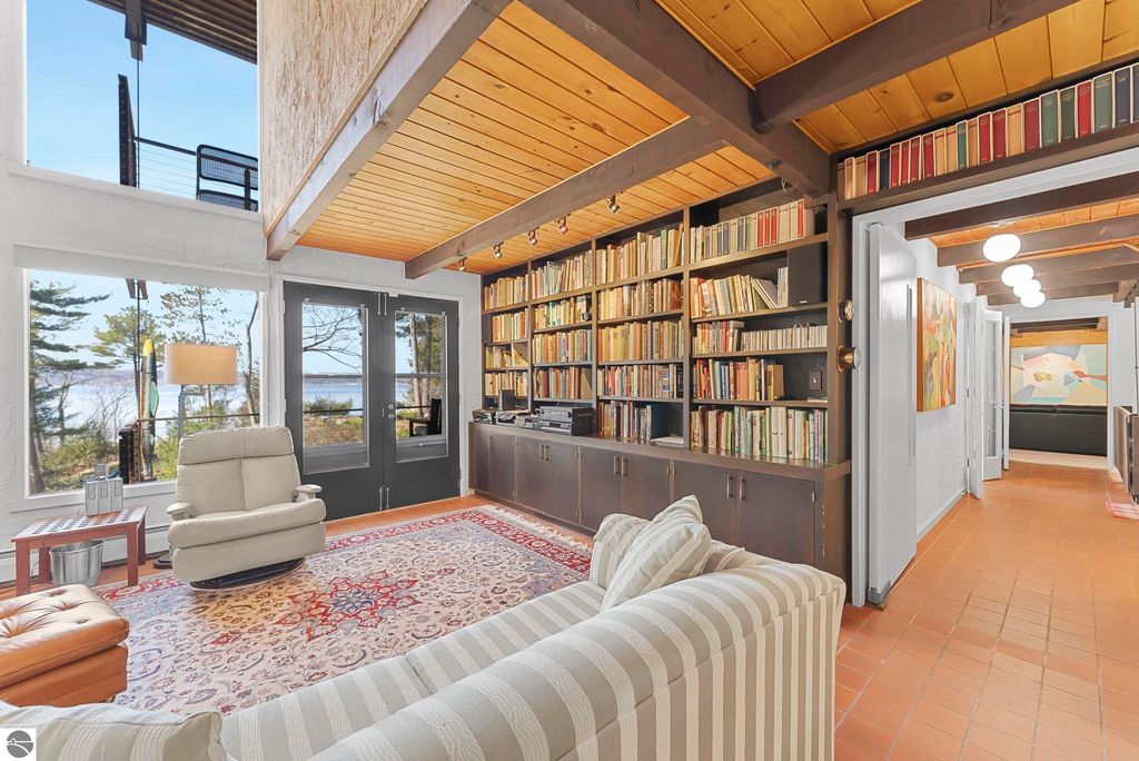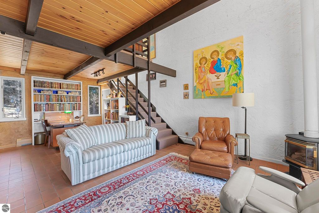 Set near the coveted base of Old Mission Peninsula, this exceptional property offers a rare combination of scale, privacy, and proximity"”features seldom found in a single offering. The beautiful and unique architecture of this home is like no other on Old Mission. With just over six acres, the estate presents an extraordinary opportunity in one of Traverse City's most sought-after locations, where acreage of this magnitude is virtually unheard of. The 3,500-square-foot residence is thoughtfully positioned to capture sweeping sunset views over West Bay, with a front-row seat to summer airshows, holiday fireworks, and the ever-changing rhythm of boat traffic along the shoreline. The home offers several separate family areas for entertaining, celebrating family or simply downtime in the cozy and warm interior. Expansive windows and well-proportioned living spaces bring the outdoors in, creating a seamless connection to the surrounding landscape. With three bedrooms and three baths, the home is both substantial and comfortable, offering flexibility for year-round living or a refined seasonal retreat. Just minutes from downtown Traverse City, yet removed enough to feel private and serene, this is a truly rare holding on Old Mission Peninsula"”where location, land, and view converge in a way that is increasingly difficult to find. A lower level workshop with tons of storage and a really nice sized garden shed are another bonus with this property. The Views are incredible and the wooded and rolling acreage offers so many opportunities you wont find with other homes.