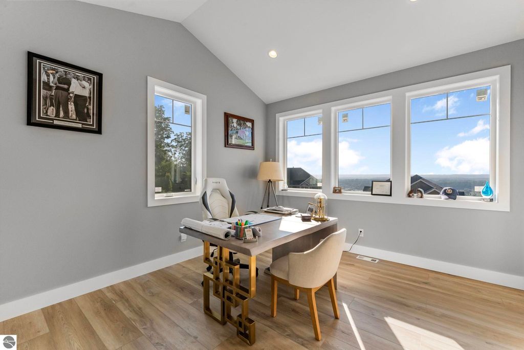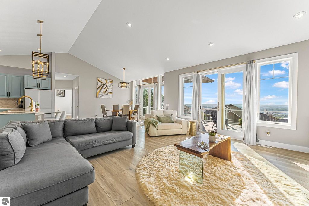 Welcome to 4239 Eagles View, where breathtaking panoramic views of Traverse City create an unforgettable backdrop for everyday living. Set above the city in one of Traverse City's most serene and prestigious neighborhoods, this exceptional residence blends quality craftsmanship with elevated comfort and timeless design. Expansive windows frame the stunning skyline views, filling the home with natural light and creating a warm, inviting atmosphere throughout. The open-concept layout flows effortlessly from room to room, offering an ideal setting for both sophisticated entertaining and relaxed everyday living. At the heart of the home is a chef's kitchen designed to impress, featuring premium KraftMaid cabinetry, striking Cambria quartz countertops, and a professional-grade ILVE range"”an exceptional centerpiece for those who appreciate both beauty and performance. Thoughtfully designed with both elegance and functionality in mind, this culinary space is truly the heart of the home. Nestled within a quiet, meticulously maintained community, this residence offers the perfect blend of privacy and convenience. Just minutes away, the vibrant Village at the Grand Traverse Commons offers boutique shopping, artisanal cafés, and award-winning dining. Miles of scenic hiking and biking trails wind through the surrounding natural areas, while Munson Medical Center and downtown Traverse City remain just moments away. With its remarkable views, refined finishes, and exceptional location, 4239 Eagles View offers a rare opportunity to experience the very best of Traverse City living. Seller is a licensed real estate agent.