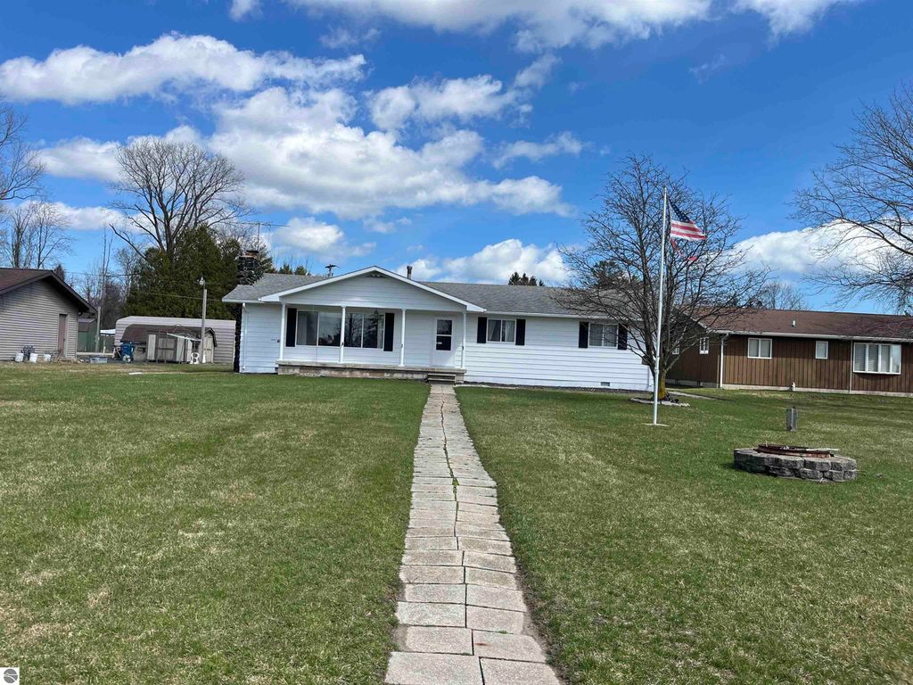 Start your summer with a new home on the AuGres River. This home has 80 feet of riverfront with a steel seawall. Facing the west for beautiful sunsets and a bend in the river to the east. Park your boat in front and still have room for your friends to park theirs when they come to visit. With a large living room overlooking the river, you can enjoy morning coffee or evening beverages inside or out. The living room also has a wood-burning stove for those cold winter nights. The home also has 3 bedrooms, 1 3/4 bath laundry/utility room attached 2 1/2 car garage. an additional storage unit for all of your toys.