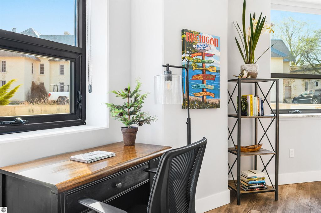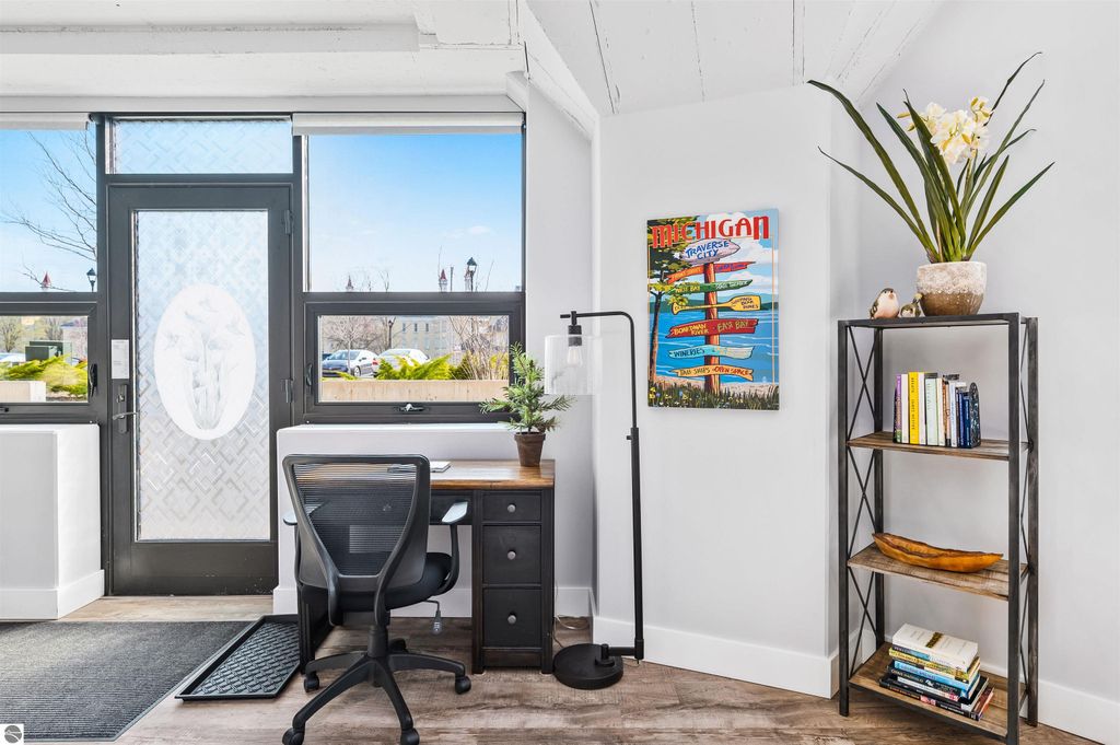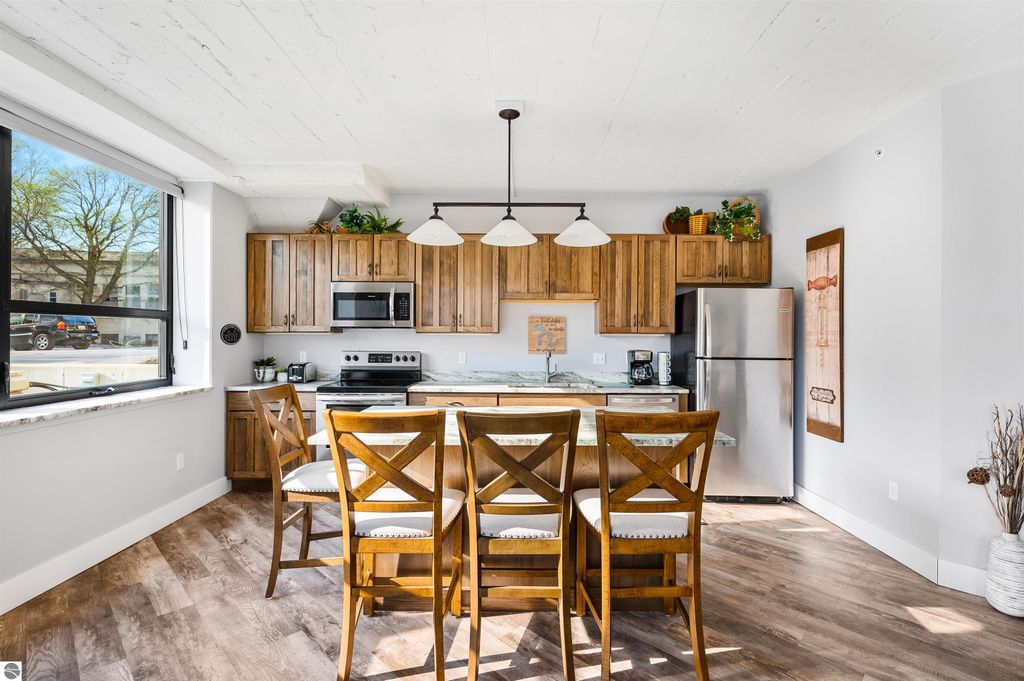 Your search for old-world ambiance, a vibrant urban lifestyle & the perfect home or investment property...ends here. GT Commons ground floor condo in building 58. Open, sunny, light filled great room. Engineered wood floors, kitchen island, granite counters, tiled shower. Views of the historic red spires on top of building 50. Extremely turn-key w/ all furnishings included. Large private wrap around patio, underground heated parking space & storage area. The Village offers events, shopping, services, salons, yoga, pilates, restaurants, coffee shops, wineries & breweries. 380 acres of parkland surround the commons. Pets welcome. Short-term rentals allowed. Beaches, downtown TC 1 mile.