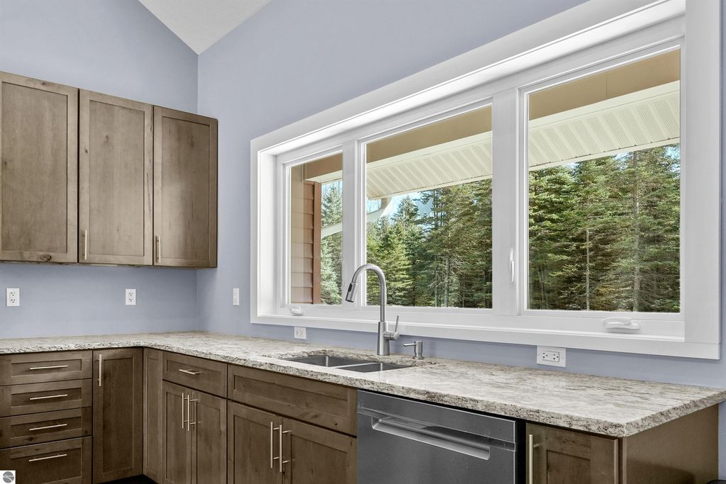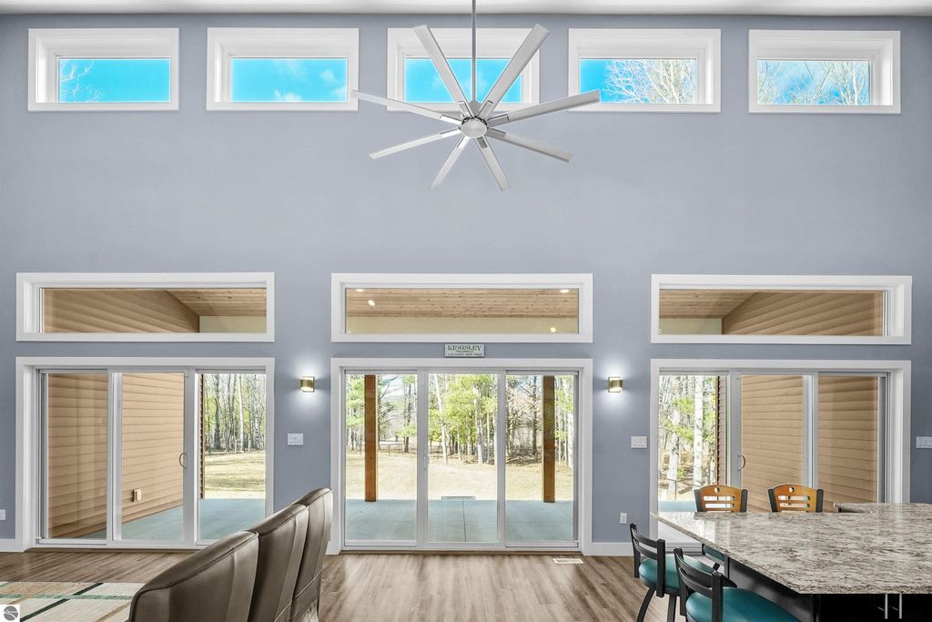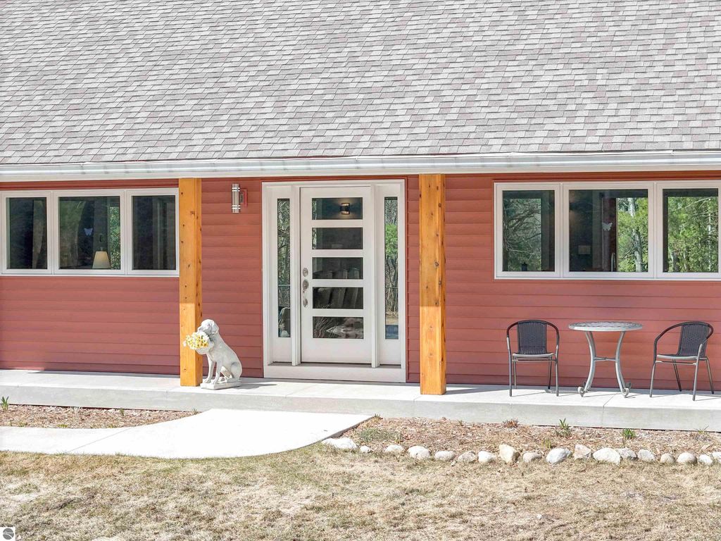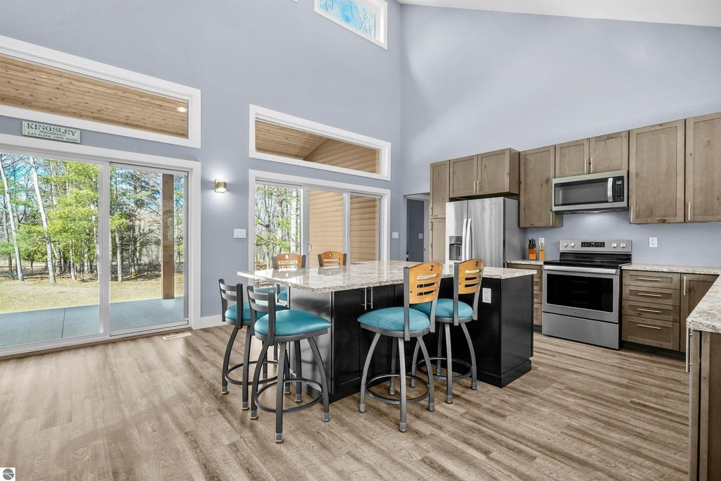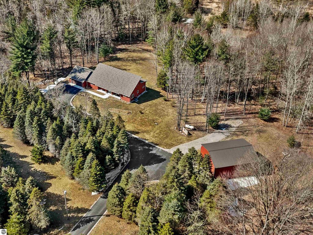 Thoughtfully built and immaculately maintained, this ranch home offers easy main-level living on 40 private acres just outside of the Village of Kingsley. Inside, you'll find luxury vinyl plank flooring throughout, vaulted ceilings, and abundant natural light from transom windows and skylights, all complementing the open, functional layout and wooded views. The kitchen features granite countertops and stainless steel appliances, while the primary ensuite includes a private bath with a tiled shower. A covered rear patio provides a great place to take in the setting, while the property also includes a fenced yard, RV hookup, 30x40 pole barn, whole house generator, and a mix of open space and mature woods for privacy and room to roam. A well-executed property that delivers space, comfort, and functionality in a truly private setting, just a short drive to Traverse City.