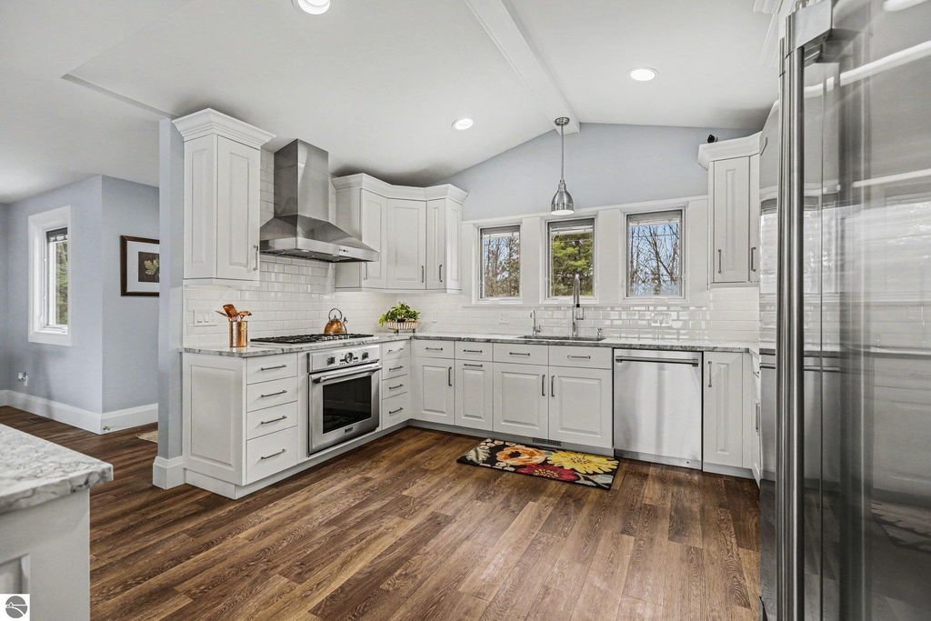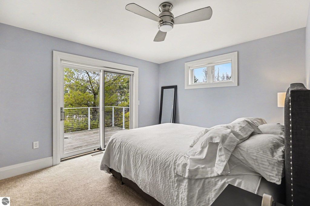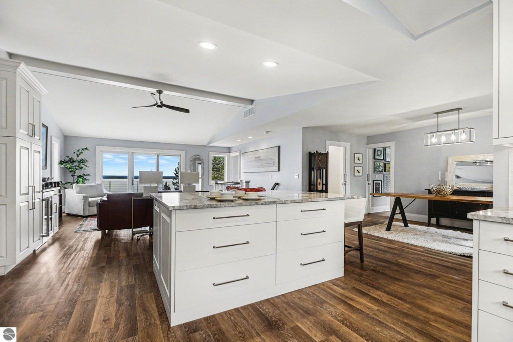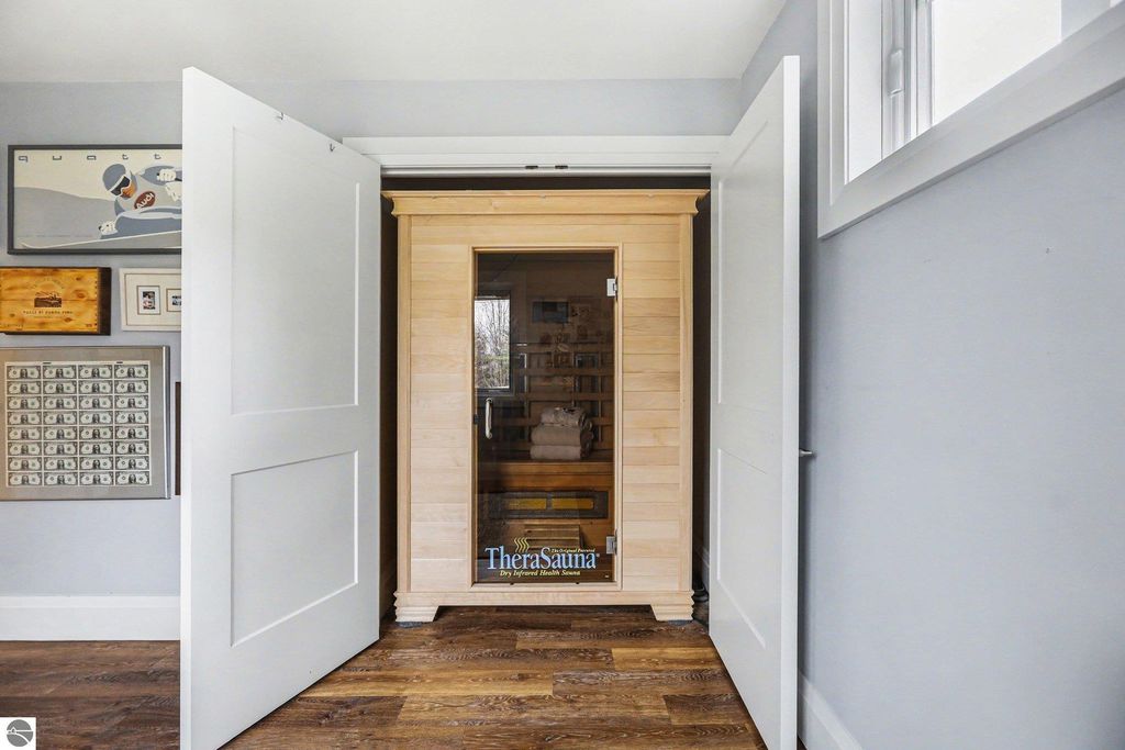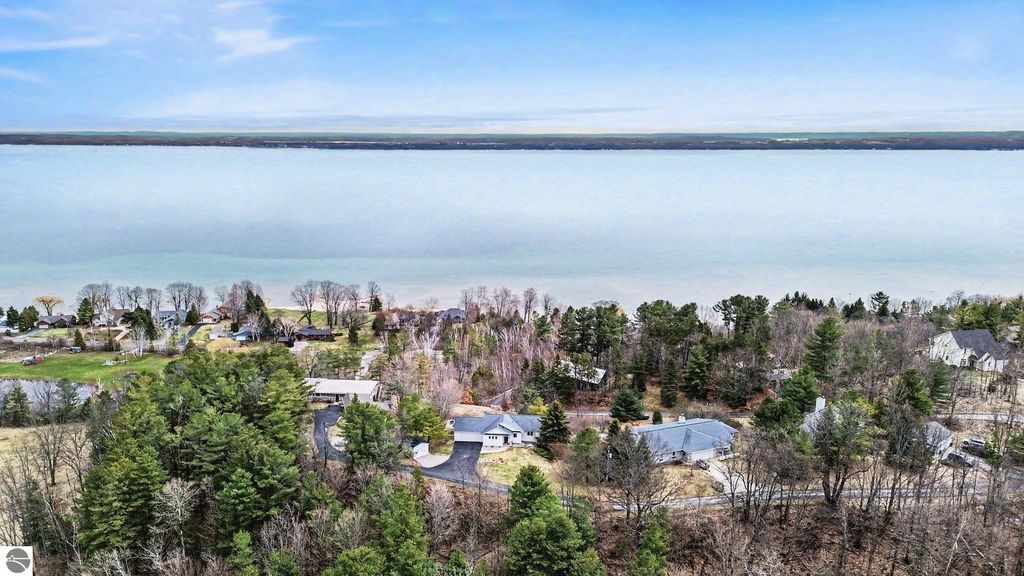 Old Mission Stunner. Perched high atop a private hilltop, where sky meets water, this extraordinary 3-bedroom, 2.5-bath residence captures sweeping, cinematic views of East Grand Traverse Bay"”offering a lifestyle defined by tranquility, elegance, and the unmistakable charm of Northern Michigan. From the moment you arrive, the setting feels almost storybook... winding roads, rolling hills, and a sense that you've discovered something truly special. With shared beachfront access and just moments from Old Mission's celebrated wineries, scenic trails, pristine beaches, iconic lighthouse, and vibrant dining"”yet only minutes to downtown Traverse City"”this is where convenience and escape live in perfect harmony. Reimagined and rebuilt down to the studs in 2017, every inch of this home reflects thoughtful design and uncompromising quality. Sunlight pours through expansive Pella windows, illuminating soaring vaulted ceilings and an open-concept living space crafted for both intimate moments and effortless entertaining. The chef's kitchen is a centerpiece"”featuring natural quartzite surfaces, a generous island, Thermador appliances, Electrolux refrigeration, wine cooler, and custom finishes that elevate everyday living. A true highlight awaits in the main-level guest suite"”an inspired recreation of a 5-star suite at the Ritz-Carlton Montreal"”offering guests an experience that feels indulgent, refined, and unforgettable. Comfort continues throughout with heated bathroom floors, Kohler fixtures, Baldwin hardware, main suite laundry, a whole-house Kohler generator, and a heated, insulated 2-car garage with matching storage shed. Outdoors, the experience deepens. An IPE hardwood deck and custom stone patio lead to a private wellness retreat"”complete with enclosed infrared sauna terrace and hot tub"”creating a serene space to unwind beneath northern skies. Thoughtful landscaping, Michigan river rock, mature plantings, Hunter irrigation, and an invisible fence provide beauty and ease.