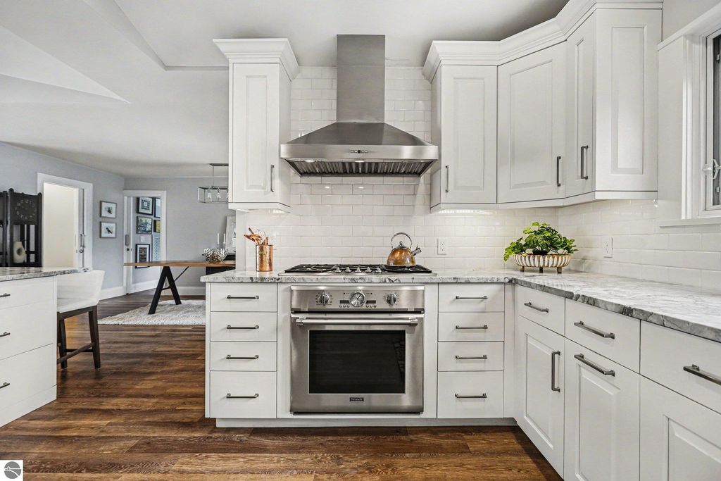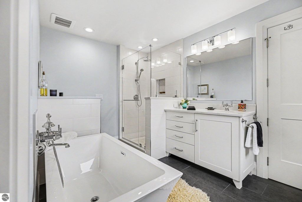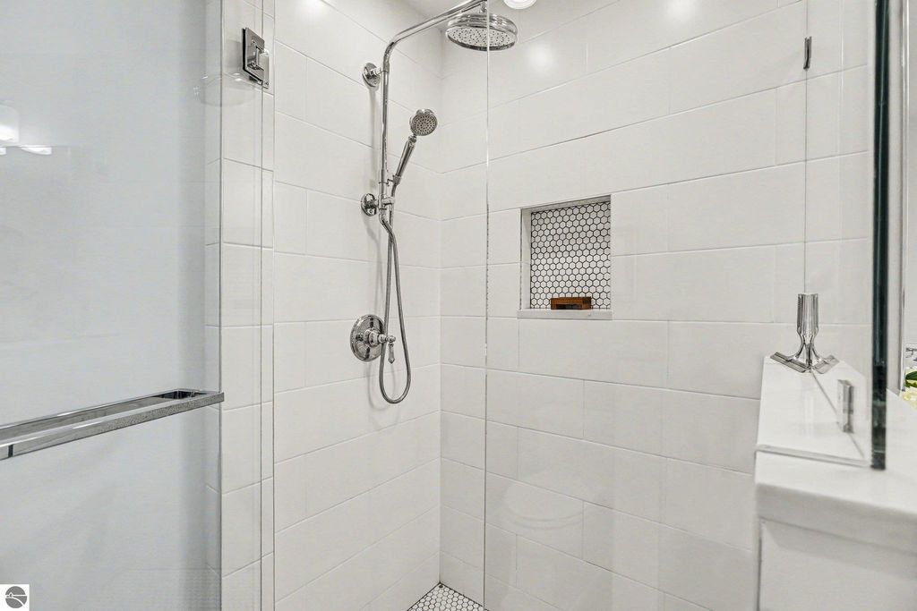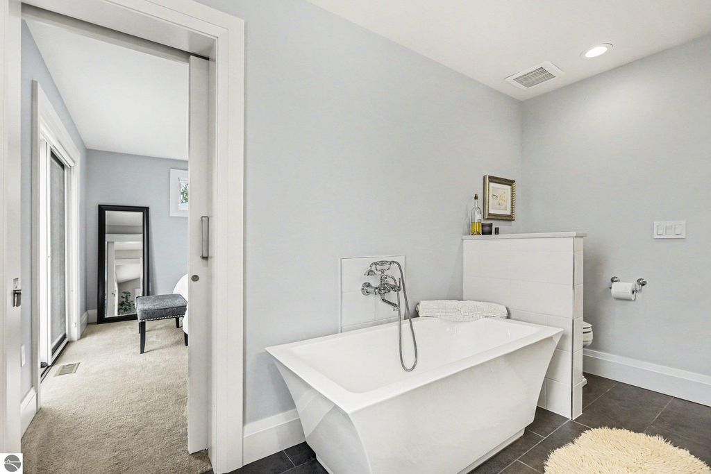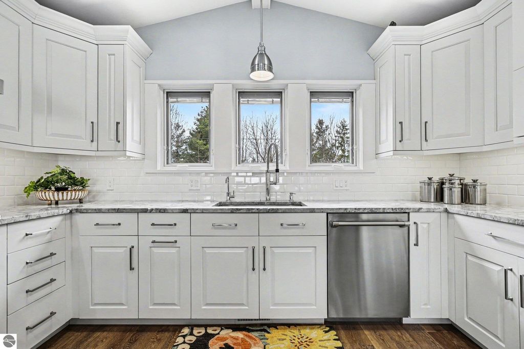 Old Mission Stunner. Perched high atop a private hilltop, where sky meets water, this extraordinary 3-bedroom, 2.5-bath residence captures sweeping, cinematic views of East Grand Traverse Bay"”offering a lifestyle defined by tranquility, elegance, and the unmistakable charm of Northern Michigan. From the moment you arrive, the setting feels almost storybook... winding roads, rolling hills, and a sense that you've discovered something truly special. With shared beachfront access and just moments from Old Mission's celebrated wineries, scenic trails, pristine beaches, iconic lighthouse, and vibrant dining"”yet only minutes to downtown Traverse City"”this is where convenience and escape live in perfect harmony. Reimagined and rebuilt down to the studs in 2017, every inch of this home reflects thoughtful design and uncompromising quality. Sunlight pours through expansive Pella windows, illuminating soaring vaulted ceilings and an open-concept living space crafted for both intimate moments and effortless entertaining. The chef's kitchen is a centerpiece"”featuring natural quartzite surfaces, a generous island, Thermador appliances, Electrolux refrigeration, wine cooler, and custom finishes that elevate everyday living. A true highlight awaits in the main-level guest suite"”an inspired recreation of a 5-star suite at the Ritz-Carlton Montreal"”offering guests an experience that feels indulgent, refined, and unforgettable. Comfort continues throughout with heated bathroom floors, Kohler fixtures, Baldwin hardware, main suite laundry, a whole-house Kohler generator, and a heated, insulated 2-car garage with matching storage shed. Outdoors, the experience deepens. An IPE hardwood deck and custom stone patio lead to a private wellness retreat"”complete with enclosed infrared sauna terrace and hot tub"”creating a serene space to unwind beneath northern skies. Thoughtful landscaping, Michigan river rock, mature plantings, Hunter irrigation, and an invisible fence provide beauty and ease.