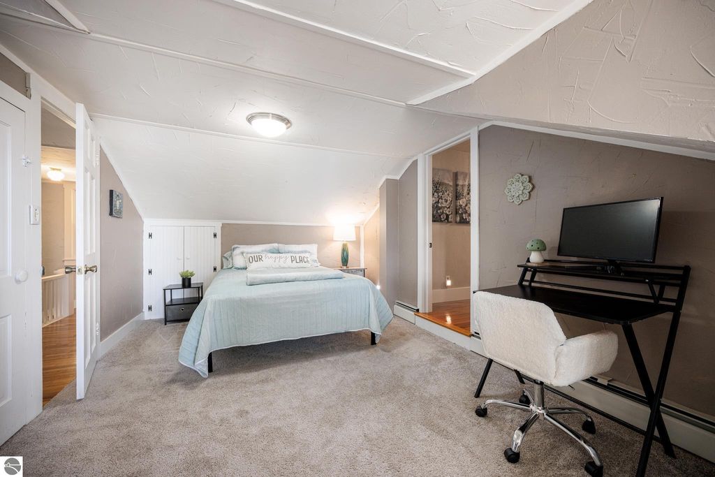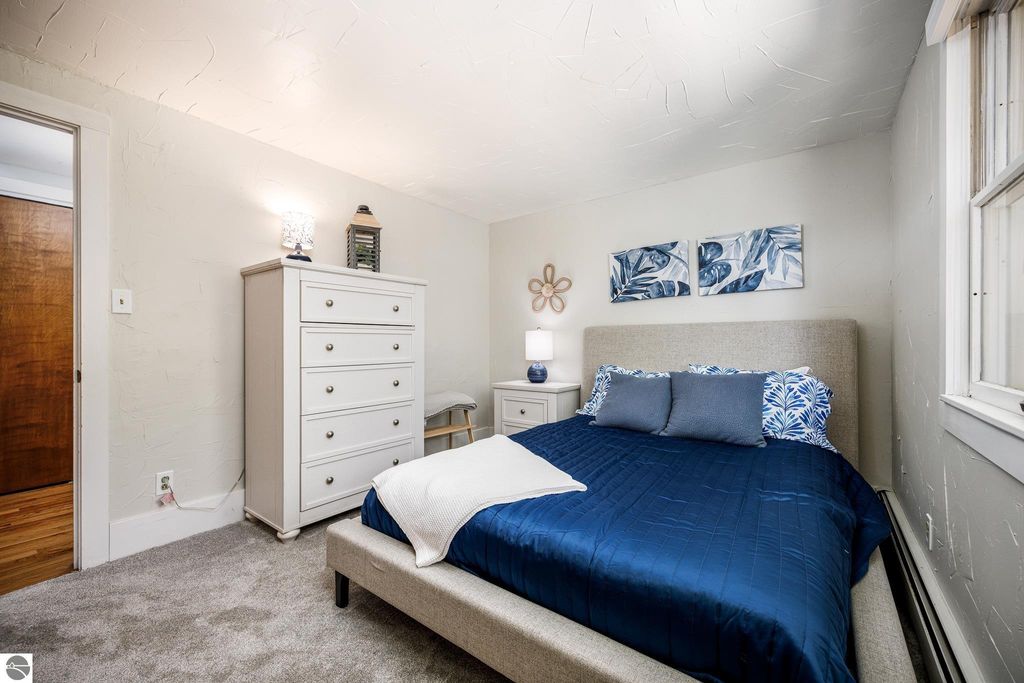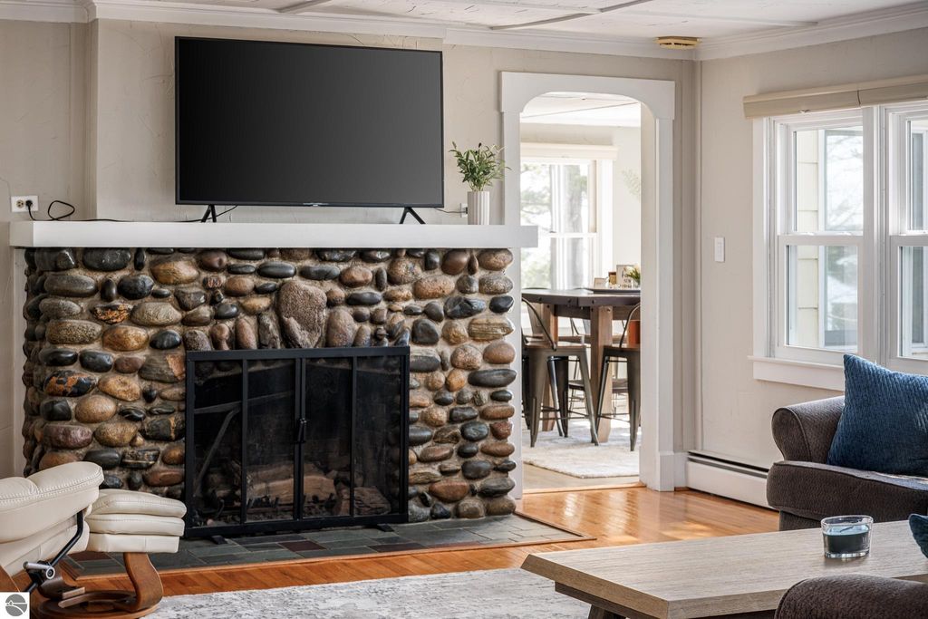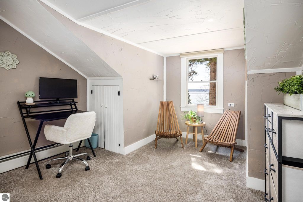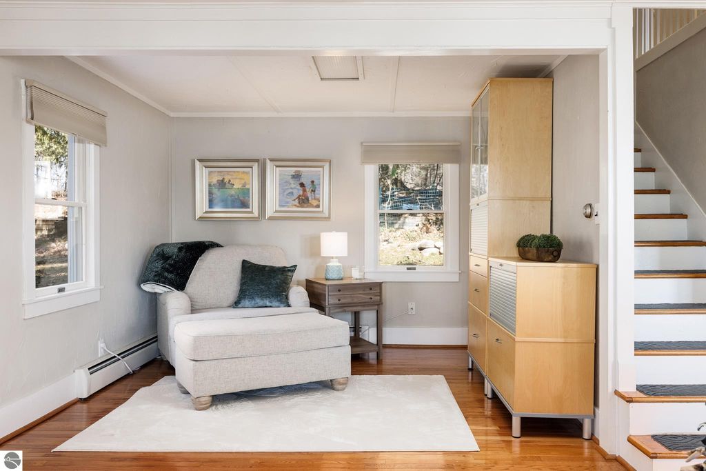 At the base of Old Mission Peninsula, where the shoreline softens and East Bay opens wide, this 4-bedroom, 2-bath home settles naturally into its surroundings on nearly an acre of land, 85 feet of private frontage, and views that shift with the light from morning through dusk. Life here leans outward. Layered outdoor spaces create an easy rhythm for gathering, unwinding, and taking in the water-unforced, unhurried. Coffee at sunrise, long evenings with friends, the subtle soundtrack of waves in the background. It all feels as it should. Inside, the home reflects its 1925 roots; simple, grounded, and full of quiet character. Recent updates, including a new roof, updated boiler system, new carpet throughout, gutters, and steel insulated garage doors offer a solid foundation for what comes next, whether that's enjoying it as it stands or shaping it over time. The location carries its own kind of balance. Traverse City sits just minutes away, close enough for dinner reservations, market runs, and marina days. Head north, and the peninsula unfolds with vineyards, farm stands, and winding roads that slow you down in the best way. East Shore Road itself is known for its quieter pace, where traffic fades and the bay remains in view. This is a place where the edges blur a bit between town and retreat, between everyday living and something that feels more considered. Homes like this don't rely on explanation. The setting does the talking. Old Mission, at its most honest.