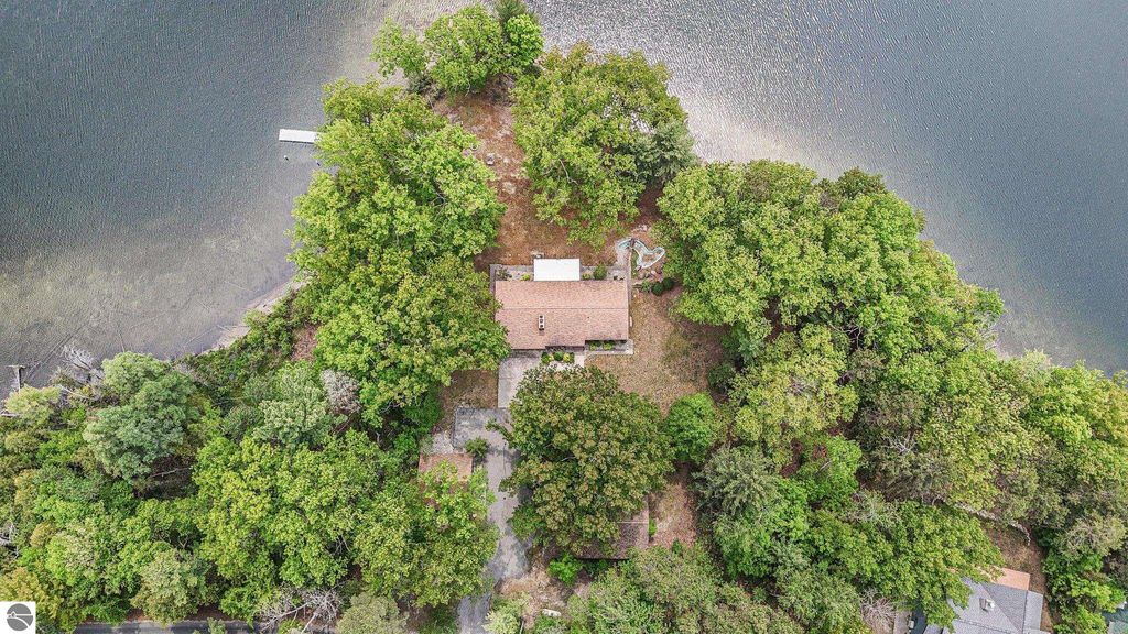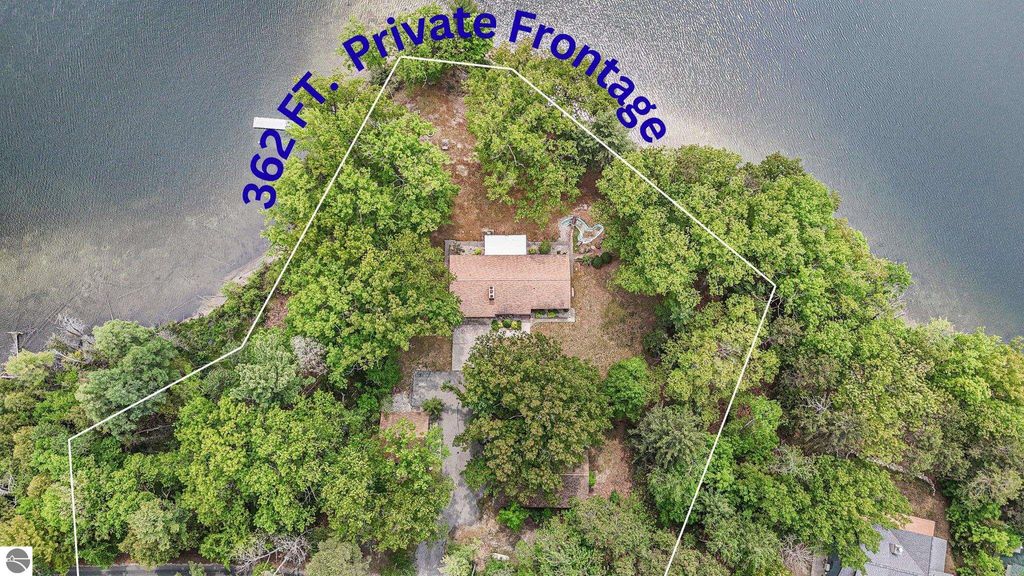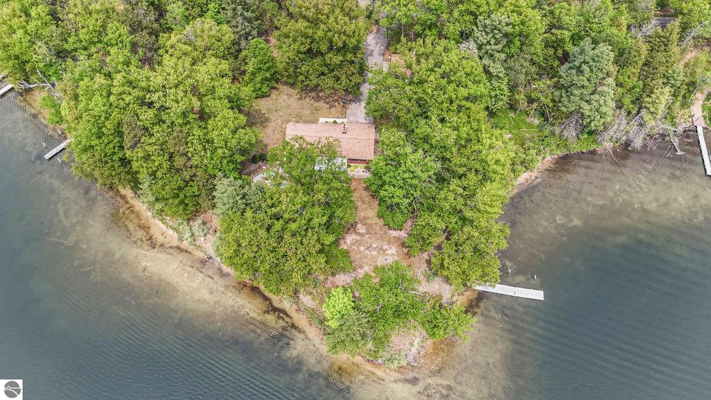 Rare Clam Lake frontage featuring 362 feet of private shoreline, expansive water views, and direct access to Northern Michigan's Chain of Lakes, with Torch Lake just a half mile away. Properties with this level of frontage, depth, and flexibility are increasingly difficult to find. Set on approximately 1.39 acres, the property offers exceptional long-term value through its land characteristics alone. The existing ranch-style residence and finished lower level provide immediate usability, while the site itself allows for a range of future possibilities, including renovation, holding as a private waterfront retreat, or potential redevelopment subject to township approval. The setting is quiet and private, yet ideally located near the Dockside restaurant and less than ten minutes from downtown Alden. A detached garage and a substantial 60' x 40' pole building with concrete floors add functional utility for storage, boats, and recreational equipment. This property is being conveyed as-is with the right to inspect, allowing buyers to evaluate the opportunity based on their intended use. Whether acquired for long-term enjoyment, investment, or future planning, this is a rare chance to secure significant frontage and flexibility on one of Northern Michigan's most desirable lake systems. The dock conveys with the property. All information provided is deemed reliable but is not guaranteed and should be independently verified. Buyers and buyers agents are encouraged to conduct their own due diligence regarding the property's condition, features, and any applicable regulations or restrictions.