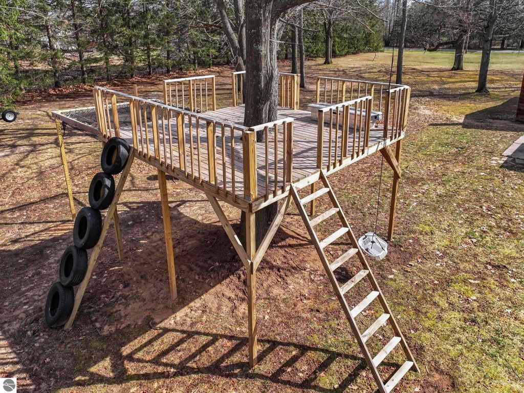 6561 34 1/2 Road is the kind of property that gives buyers space, flexibility, and a setting that's hard to replicate. This expansive 6-bedroom, 2.5-bath home offers generously sized bedrooms and a flexible layout ideal for a variety of living needs. The main floor features three bedrooms"”two spacious secondary bedrooms plus a large primary suite complete with an oversized closet and private ensuite. The lower level adds even more living space, offering three additional bedrooms, including two very large finished bedrooms and one unfinished bedroom ready for your vision"”perfect for adding value and customizing to your needs. The main living area is designed for both comfort and connection, with a spacious dining room, an enclosed porch bonus room, and a huge kitchen that truly serves as the heart of the home. A unique real fireplace connects the kitchen and living room, creating a warm, inviting atmosphere on both sides, while a second wood-burning fireplace in the basement adds even more cozy potential. Step outside and the property really shines. Enjoy a beautiful deck overlooking the backyard, a concrete firepit area perfect for gatherings, and a standout tree fort platform with a zipline (zipline seat excluded). The inviting front porch offers the perfect spot to relax and unwind. A two-car garage adds practicality, and upcoming improvements"”including relocation of the garage door and a new driveway"”will enhance functionality and convenience even further. And the location? That's the standout. Nestled near the National Forest, this property offers direct access to the natural beauty and outdoor recreation Northern Michigan is known for"”peaceful, private, and full of opportunity. If you're looking for space, character, and flexibility, this one delivers.