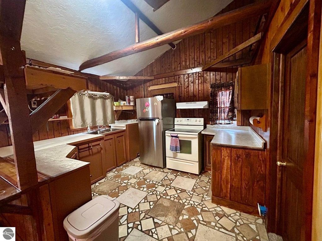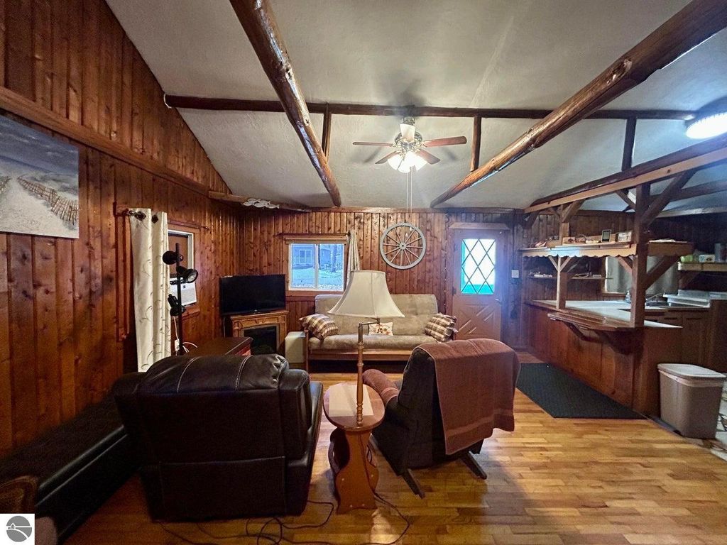 Well-maintained and full of rustic charm, this updated log cabin sits less than a quarter mile from beautiful Houghton Lake. Offering 1 bedroom and 1 full bath, this cozy getaway also features a detached 16' x 24' garage with storage above, providing plenty of room for your ATV, golf cart, fishing boat, and other Up North toys. Numerous updates have been completed within the last five years, including a new metal roof, well pump, pressure tank, hot water heater, refrigerator, wall furnace, and new sunroom windows. Blending classic cabin character with the comfort of modern updates, this property offers the perfect Up North retreat close to the lake and all the recreational opportunities the area has to offer.