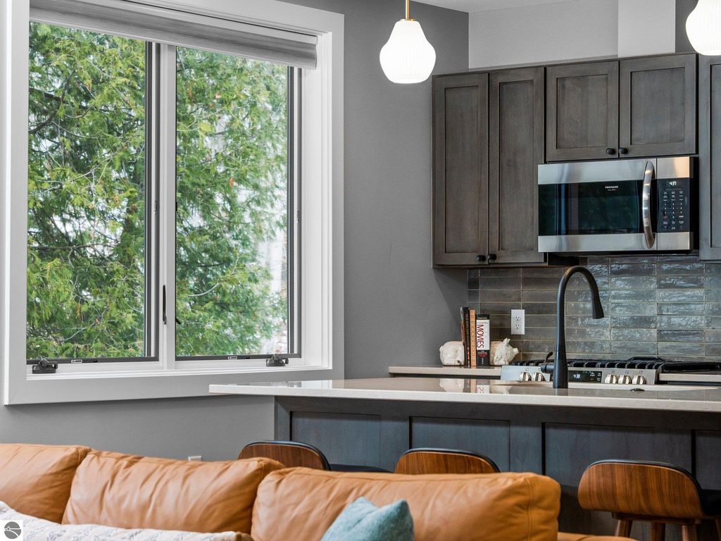 Historic ambience and a modern urban lifestyle combine to create the ideal condominium. Building 57 at the Grand Traverse Commons has been transformed into 12 stunning condos situated along the boundary of the Water Tower District of the Village, and at the base of the natural woodlands and trails of the Commons natural area. This ideal location offers restaurants, Shopping, Munson Hospital, Left Foot Charlie, Earthen Ales, S2S, Pepenaro and Stella only steps away from your front door. Downtown Traverse City and the beach are only a mile away. In contrast, enjoy the peace and tranquility and privacy of Kids Creek and a wooded landscape on your back patio. The best of both worlds! Completed in 2023 this unit is beautifully finished with many upgrades and an open and airy layout. Enjoy an attached spacious 1 car garage with custom storage, full size washer and dryer and a maintenance free lifestyle. This condo may also be used as a short term rental. Ready for immediate move in or capitalizing on the peak rental market. Don't miss out on this rare opportunity!
