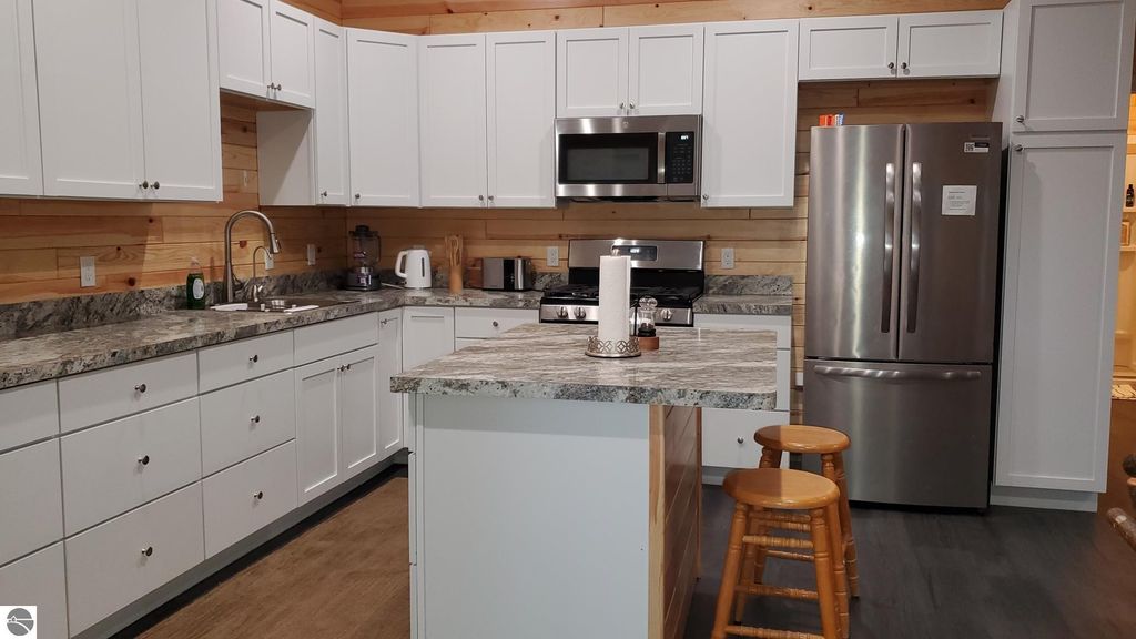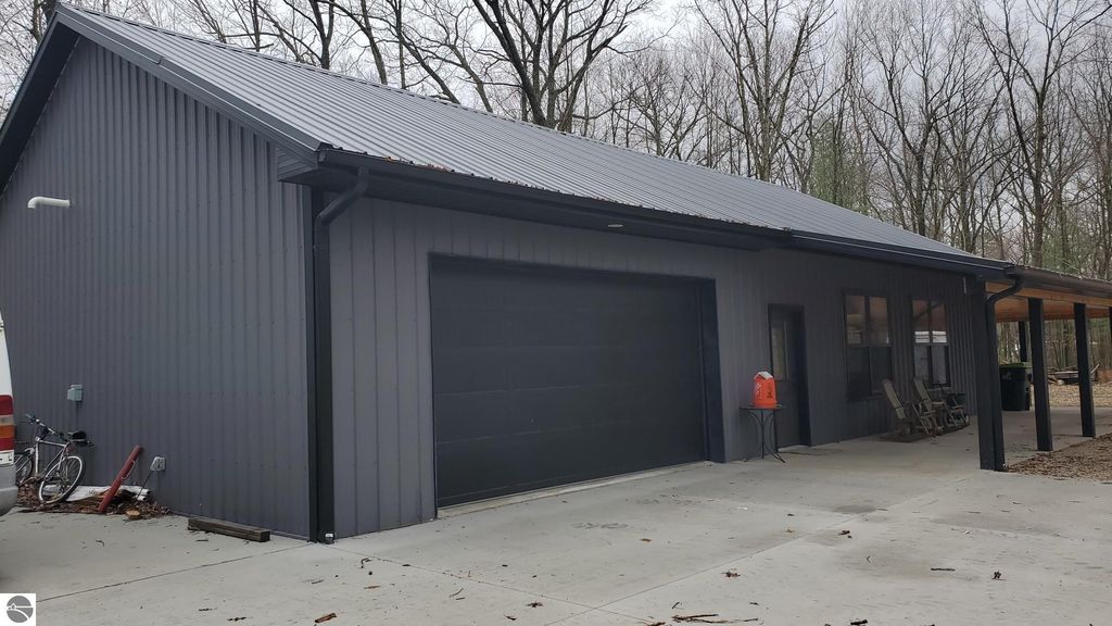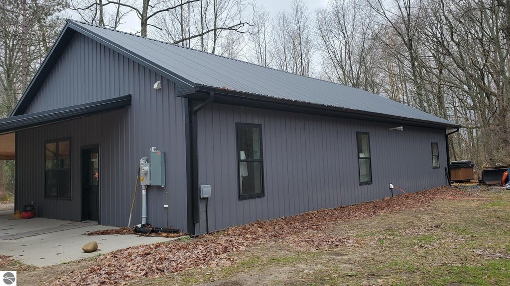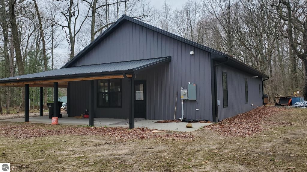 Newly built barndominium offering modern, open-concept living in a quiet wooded setting. The spacious kitchen features a center island and newer stainless-steel appliances, perfect for everyday living and entertaining. This home includes 2 comfortable bedrooms and a full bath with a walk-in shower. Enjoy the outdoors from the covered patio, all situated on just over an acre of land. A 24x32 garage provides ample storage and workspace. Conveniently located close to Lake George for year-round recreation.