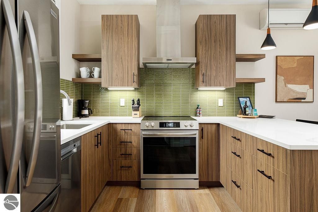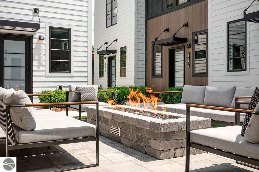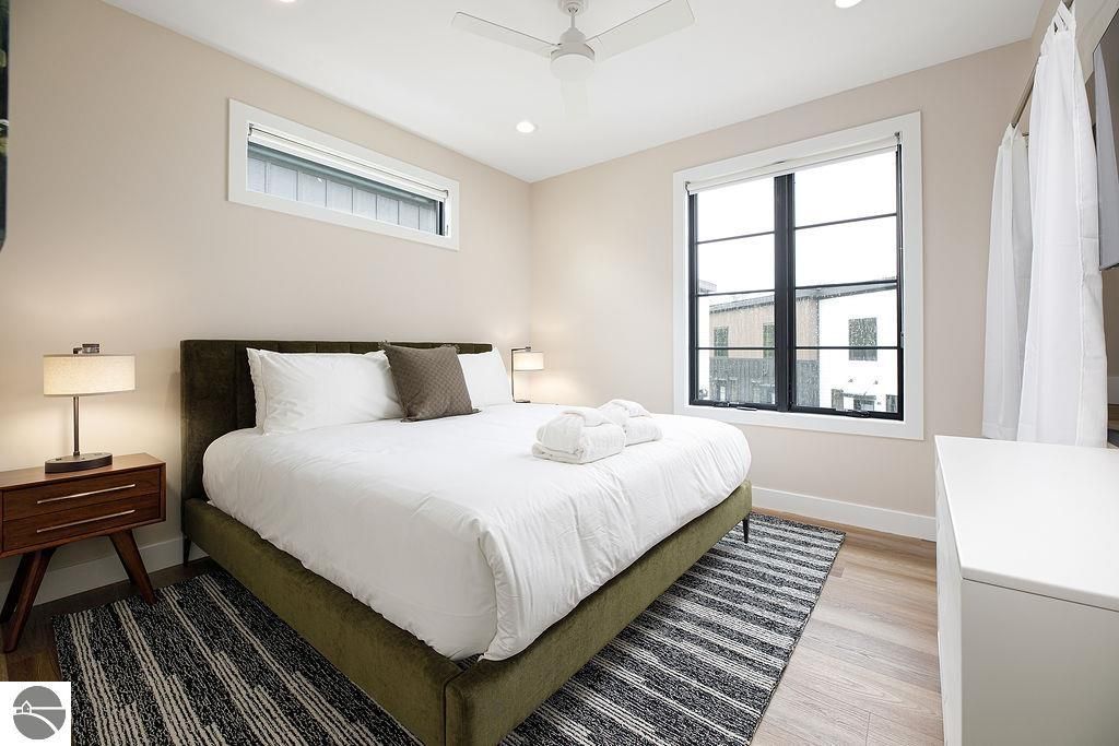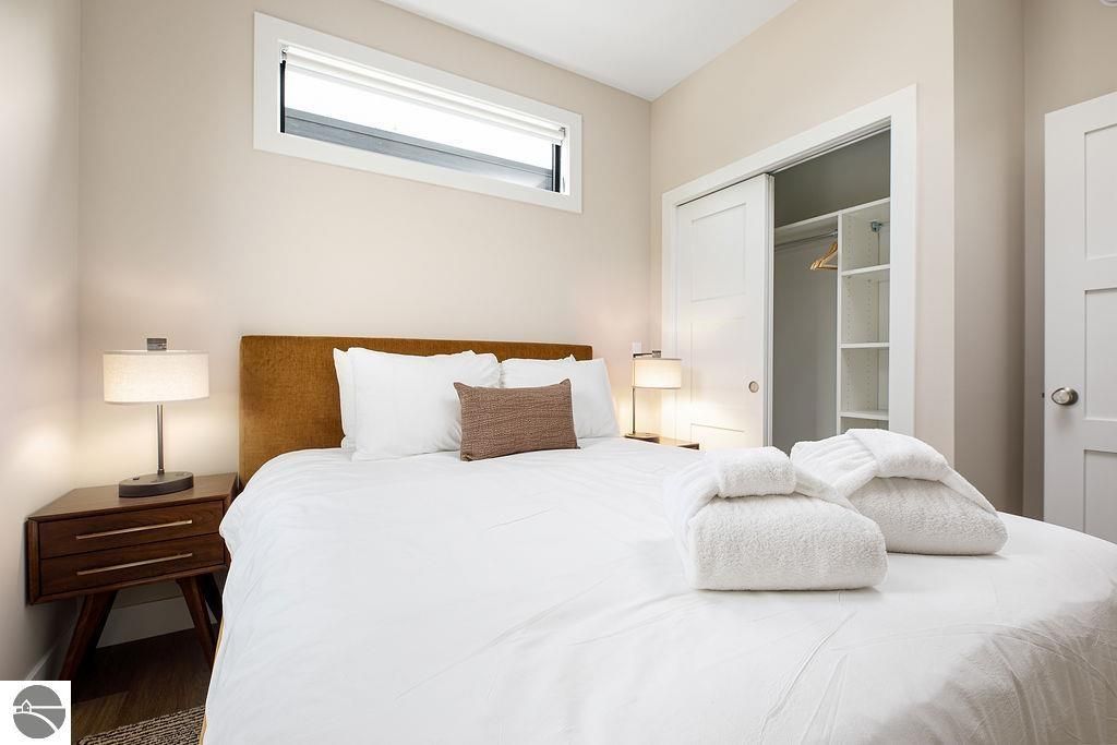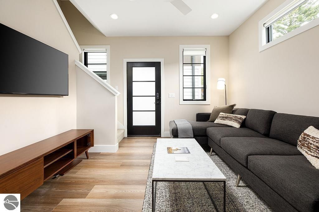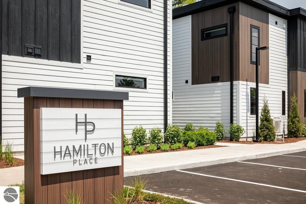 LOCATION! A newly built luxury townhome in the HEART of Traverse City. This end-unit townhome, completed in 2025, is ideally located near the base of Old Mission Peninsula - just a brief walk to Bryant Park, the Civic Center, Bardon's Ice Cream and minutes from downtown. Located within a show-stopping townhome community known as Hamilton Place. HP is thoughtfully designed community where its residents enjoy shared amenities including gas grills, gas fire pit gathering spaces, and a pergola with a long outdoor dining table. Short-term rentals are permitted, offering both lifestyle flexibility and income potential. Inside, the townhome features a fully equipped kitchen with appliances, in-unit washer and dryer, two bedrooms, and two full bathrooms. The property is offered turnkey, complete with high-end furniture and all essential housewares - everything from cookware to dishware is included. Additional highlights include Marvin casement windows with built-in blinds, glass-enclosed tile showers, heated bathroom floors, individual climate control units in each bedroom and the main living area, smart TVs throughout, and a designated parking space. A streamlined rental management program is already established, giving owners the option to generate income with ease. Alternatively, owners can self-manage, or hire a management company of their choosing! The opportunities are endless. Solidify your piece of Traverse City, MI!