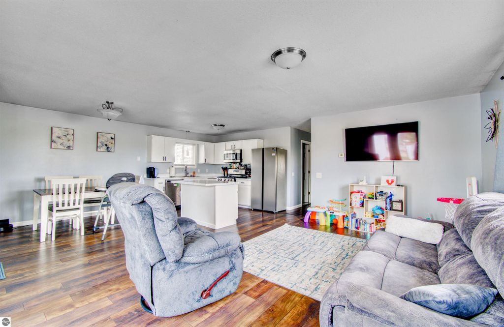 Tucked away on a peaceful one-acre setting just outside the city, this inviting 3-bedroom, 1-bath home offers the perfect blend of privacy and convenience. Built in the early 1990s, the home features approximately 1,000-1,100 square feet of comfortable living space with a functional layout designed for everyday living. Inside, you'll find a bright, open concept kitchen with island workspace and a cozy living area ideal for relaxing or entertaining. The home includes essential appliances and offers year-round comfort with natural gas forced-air heat and central air conditioning. The attached garage adds convenience, while the generous one-acre lot provides plenty of room to enjoy outdoor living, gardening, or simply taking in the quiet surroundings. The vinyl exterior and metal roof offer durability and low-maintenance appeal. Located just minutes from Mount Pleasant, this property offers a desirable balance of country living with easy access to shopping, dining, schools, and Central Michigan University. Whether you're looking for a starter home, investment opportunity, or a place to make your own, this property presents a great opportunity in a convenient location.
