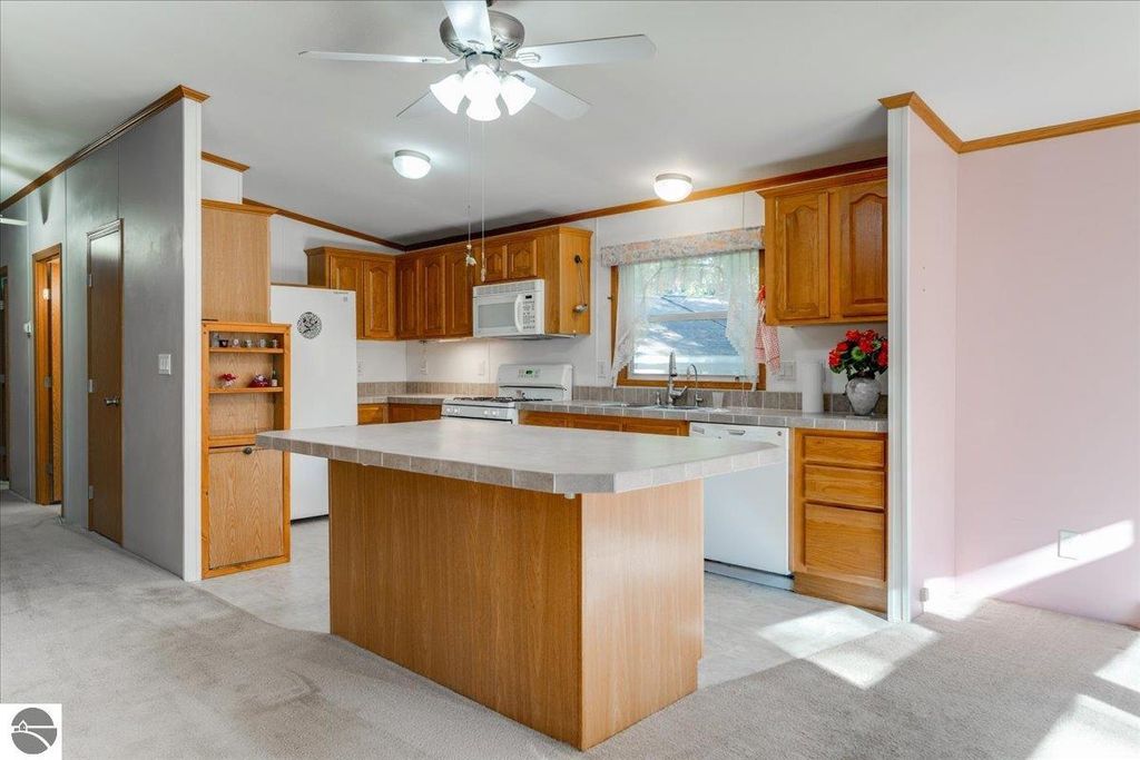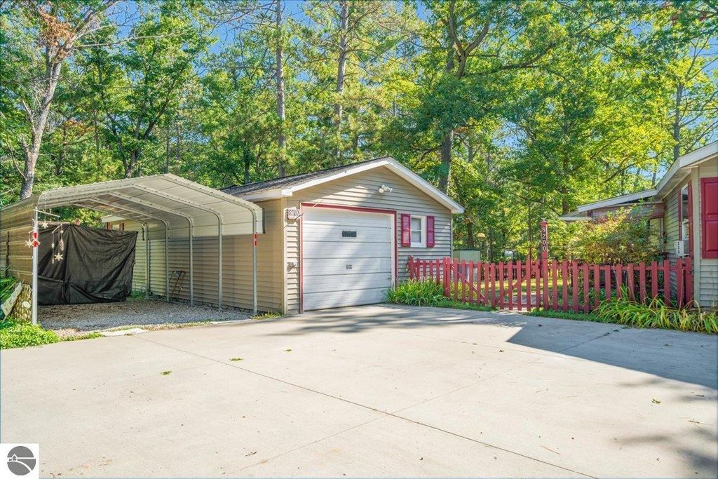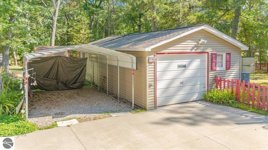 Great opportunity for a family home, vacation getaway, or retirement retreat! This well-designed, one-level home features an open floor plan with spacious living areas and ample storage throughout. The primary suite offers a private ensuite and a large walk-in closet, widened hallways and doorways add to the home's accessibility and comfort. The spacious kitchen includes a pantry and plenty of room to prepare and gather for meals. Thoughtful updates include upgraded faucets, door locks, select lighting fixtures, and six ceiling fans throughout the home for added comfort. Enjoy relaxing on the covered cement front porch"”perfect for your morning coffee or evening unwind. The exterior offers a cement driveway leading to a 1.5-car garage with 220-volt service and an insulated workshop in the back, plus an additional 5x8 shed for lawn and garden tools. A fenced garden area and fenced backyard provide great space for outdoor living and hobbies. The home also features poured walls with a 4-foot crawl space, complete with spray foam insulation and a vapor barrier for added efficiency. Ideally located near numerous lakes and less than 10 miles from the AuSable River, you'll have easy access to fishing, kayaking, and swimming. Plus, thousands of acres of Huron National Forest are just a short drive away, offering endless outdoor recreation.