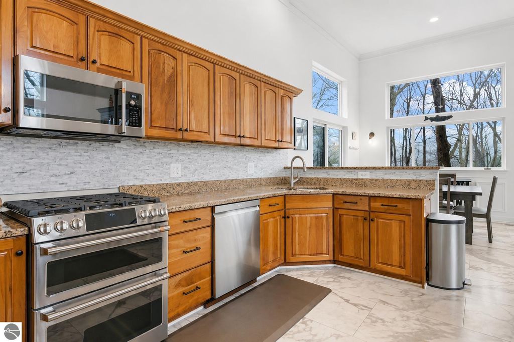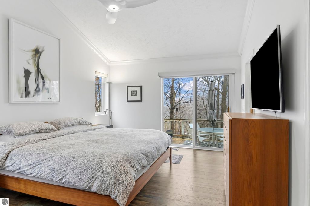 Set along the highly sought-after Old Mission Peninsula, this exceptional 4-bedroom, 3-bath home offers over 300 feet of pristine frontage on Grand Traverse Bay. Surrounded by natural wooded beauty and privacy, the property captures the essence of Northern Michigan waterfront living. Thoughtfully updated with numerous upgrades, the home blends comfort and style. Expansive windows frame breathtaking bay views, offering stunning water vistas for seven months of the year and ever-changing seasonal scenery. All new HVAC, UV light, water softener, Reverse Osmosis system, new paint, fiber optic wifi, new flooring, new appliances, Generac, new garage doors, EV charger added to garage which has room for workspace. Gorgeous shared frontage has swimming, fire pits and docking. This is a rare opportunity to own an expansive stretch of shared frontage. Whether you're seeking a year-round residence or a luxurious retreat, this property delivers the best of Peninsula living"”just a short drive from the charm, dining, and amenities of Traverse City.