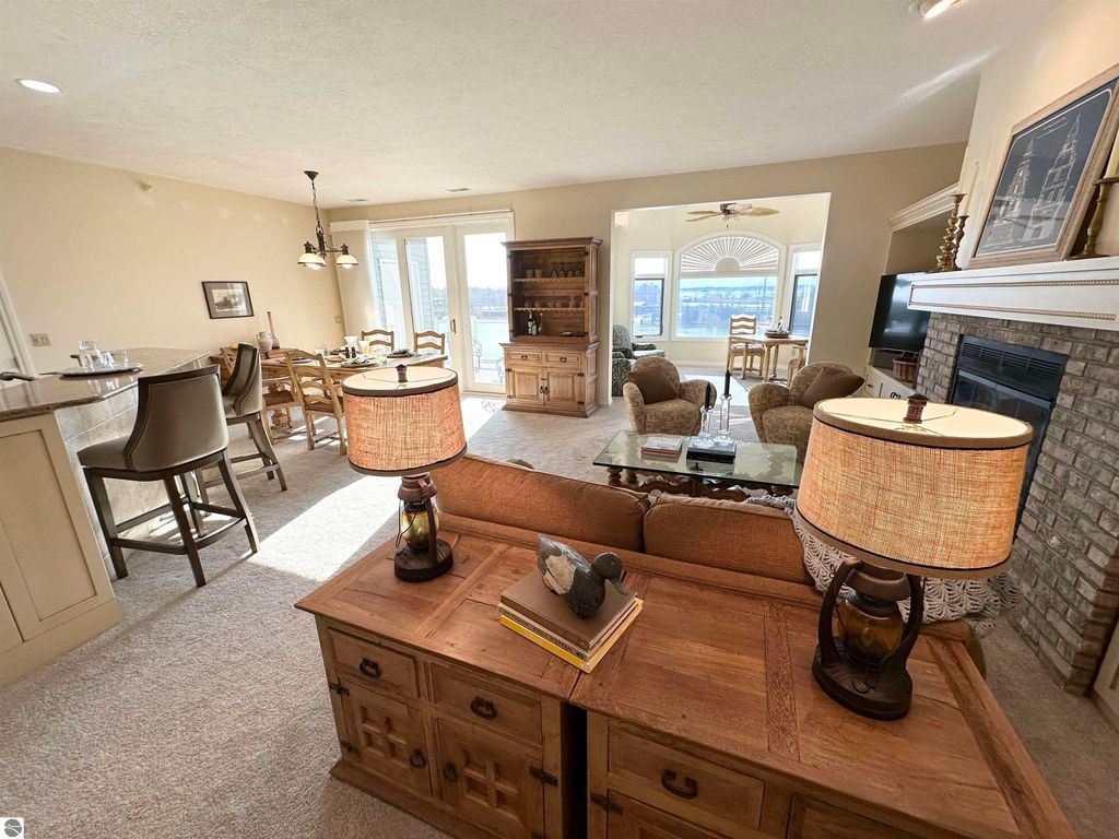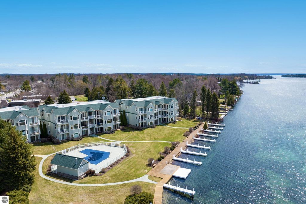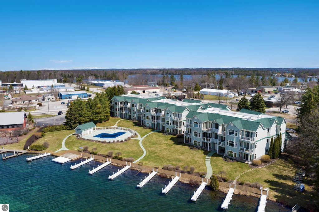 Rare top-floor, riverfront condo Unit 12 is offering panoramic Elk River views, direct waterfront access, and no neighbors above. Enjoy your private boat slip and access to the community pool, with the entire Chain of Lakes just moments away.Thoughtful upgrades throughout include new furnace and A/C water heater, WiFi-controlled thermostat, new carpeting, Trex decking, washer/dryer quartz and granite counter tops and much more.Bright, open, and filled with natural light, this condo offers a peaceful, private feel just minutes from downtown Elk Rapids. The perfect Up North getaway or year-round home this one is a must-see.