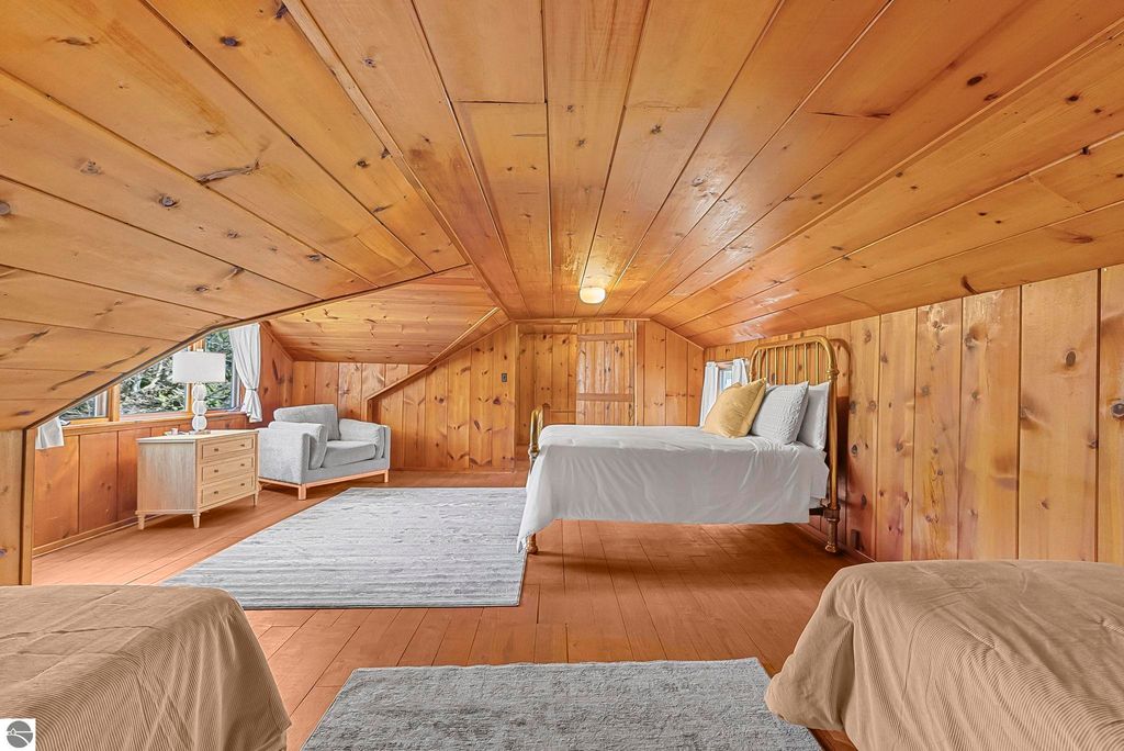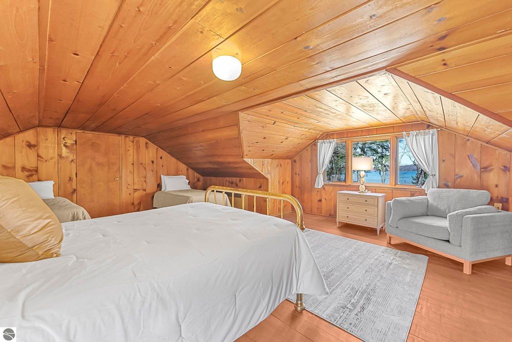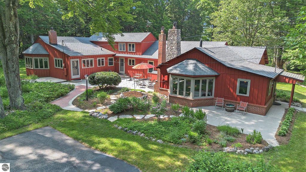 Little Glen Lake | South Shore Legacy Property| Rare Opportunity Set along 81 feet of pristine, hard-packed sandy frontage on the south shore of Little Glen Lake, this timeless lakefront estate captures the essence of Northern Michigan at its finest. Framed by a long, tree-lined approach, the property unfolds with a sense of arrival"”private, peaceful, and deeply rooted in place. It's the kind of place that feels instantly known-Like a cherished cottage you've somehow always been connected to. Originally built in 1938 and thoughtfully maintained, the nearly 3,000 square foot home blends historic charm with spacious livability. Inside, you'll find a series of inviting spaces"”three bedrooms, three baths, and a collection of intimate nooks and architectural details that speak to a different era, carefully preserved for the next generation to enjoy. Expansive windows and outdoor living areas are oriented toward the water, where beautiful sunrise views stretch across Little Glen and reach toward the distant dunes. The setting is nothing short of captivating"”calm mornings, sparkling water, and a landscape that changes beautifully with the seasons. The grounds are equally impressive. A generous lakeside yard offers space to gather, entertain, or simply unwind, while mature landscaping enhances both privacy and natural beauty. The recently installed, oversized septic system provides flexibility for future expansion, making this not only a place to enjoy today, but an investment in what's possible tomorrow. Rarely does a property of this character and setting come to market. A true classic on Little Glen Lake"”rich in history, elevated by its setting, and ready to be carried forward.