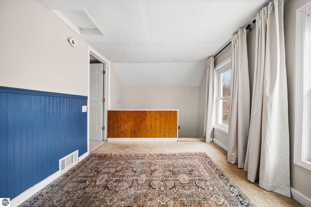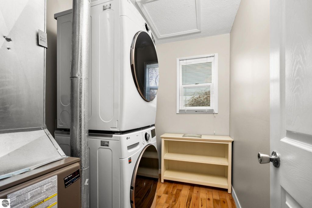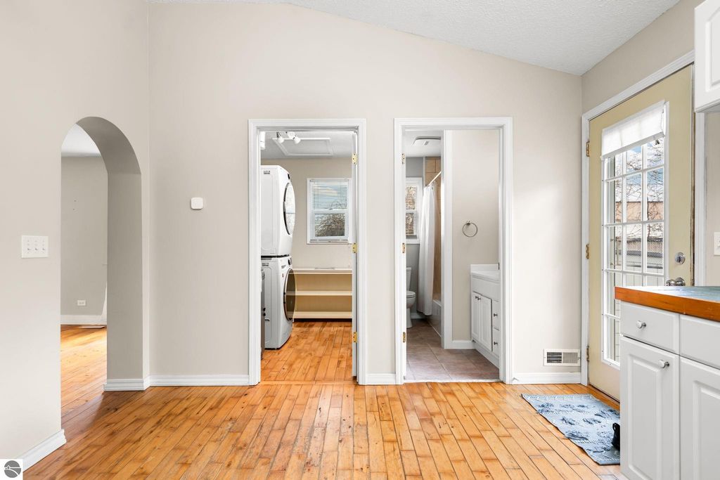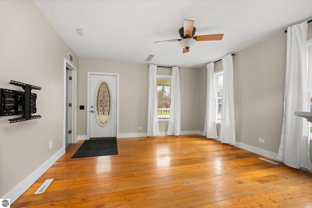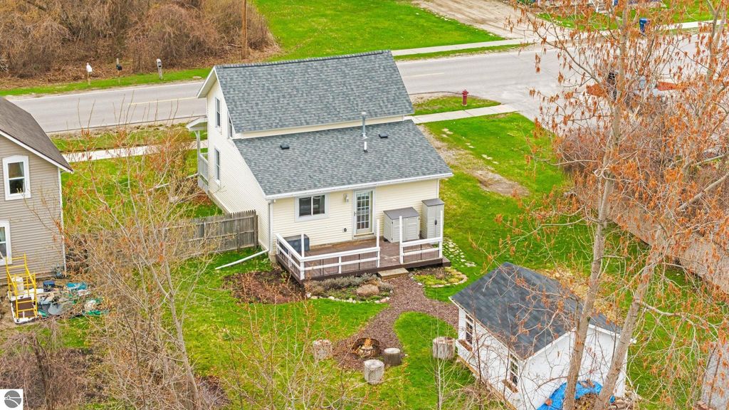 This super cute 2 bed, 1 bath home on the east side of charming Elk Rapids is the perfect blend of location, updates, and potential! Just a short walk to local restaurants, shops, and everyday conveniences, you'll love being right in the heart of it all while still enjoying a cozy neighborhood feel. Outdoor lovers will appreciate being just a couple blocks from both Elk Lake and Bass Lake, each with a convenient kayak launch for easy days on the water. Plus, it's only a 15-minute walk to the shores of Lake Michigan, giving you access to some of Northern Michigan's most beautiful beaches right at your fingertips. Inside, you'll find beautiful hardwood floors throughout the main level, adding warmth and character to the space. Upstairs, the large primary bedroom features an additional bonus room; perfect for a nursery, home office, or cozy flex space to fit your needs. Recent updates bring peace of mind, including a new roof, new sump pump, added insulation, improved water drainage, and a new washer and dryer. The electric fireplace adds a cozy touch, perfect for those cooler northern Michigan evenings. The home sits on a nice-sized lot with room to grow, including the potential to add a garage if desired. Out back, the spacious yard is ready for summer nights and weekend gathering; perfect for entertaining, gardening, or simply relaxing. You'll also appreciate the added storage with two sheds, including a brand new one for all your tools, toys, and outdoor gear. Whether you're looking for a year-round home, up north getaway, or investment opportunity, this one checks all the boxes in one of Northern Michigan's most beloved towns!