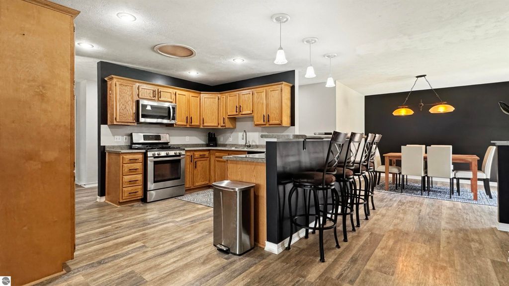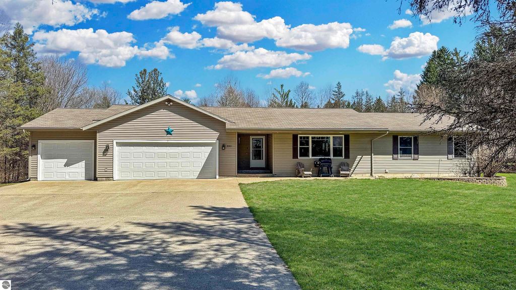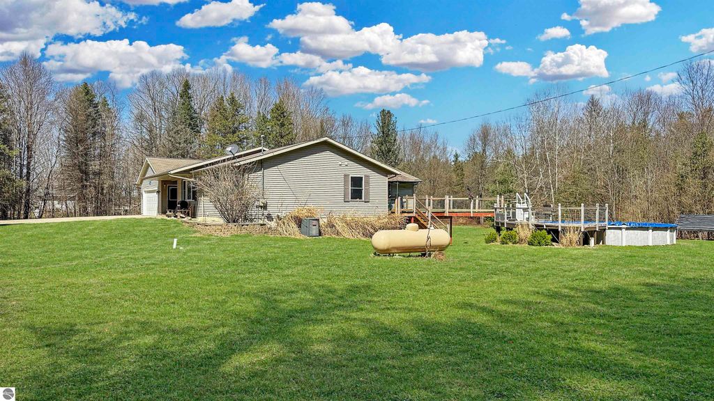 Spacious 5-bedroom, 3 ½ bath home located in the countryside of Boon. This home offers over 2100 sq ft on the main level with a finished lower walk-out level for well over 3500 sq ft of living space. The generous floor plan offers a primary bedroom with a walk-in closet and private bath, an open kitchen with sprawling seating area, and two more bedrooms. There is an ensuite that can be closed, creating a private living room, bedroom, and another bathroom. The main level features vinyl plank flooring and offers complete main floor living. The lower walk-out level has a spacious rec room, two additional bedrooms, a full bath, and ample unfinished storage. Outside is where the fun begins! The back deck leads to an above-ground pool, and the two-acre lot provides plenty of room for enjoying the country. The home boasts a 3-car garage and a storage shed. Located west of the north end of the Cadillac means easy access to the Manistee National Forest with miles of snowmobile and ATV trails, Caberfae Ski Resort, and Coyote Crossing Resort. Traverse City and the west shoreline towns are within a 45-minute commute. If you want to enjoy country living in a modern home with abundant living space, then this might just be your new place to call home.