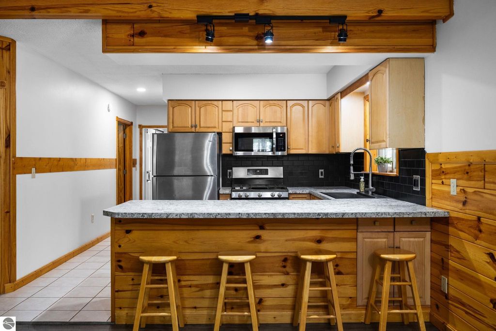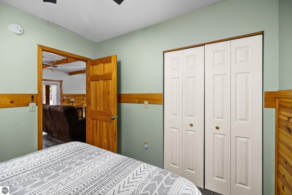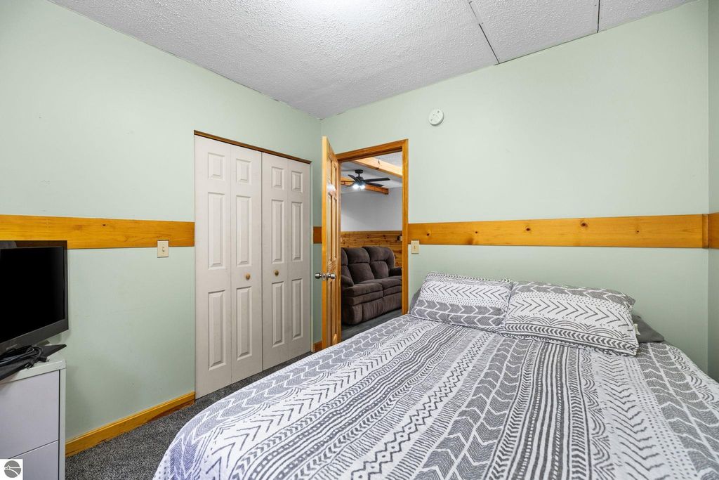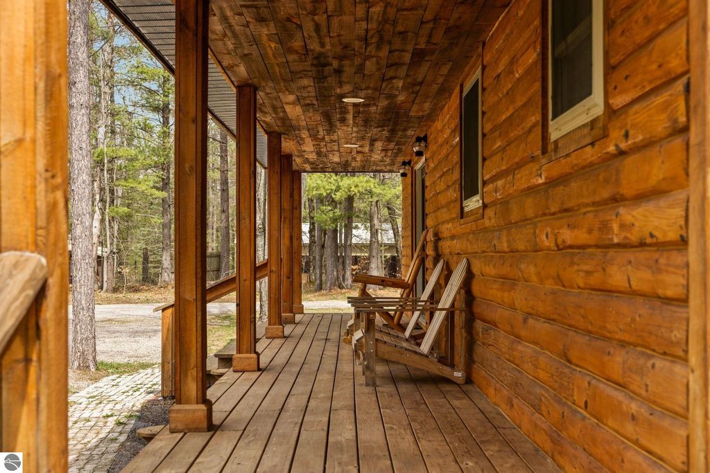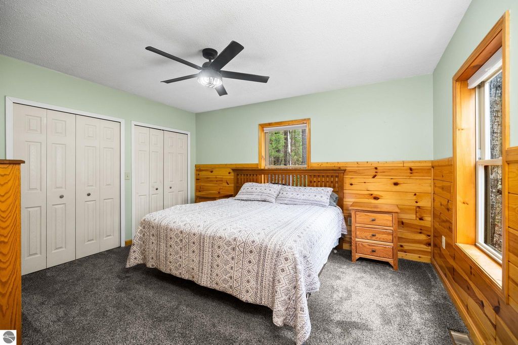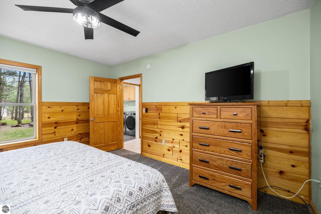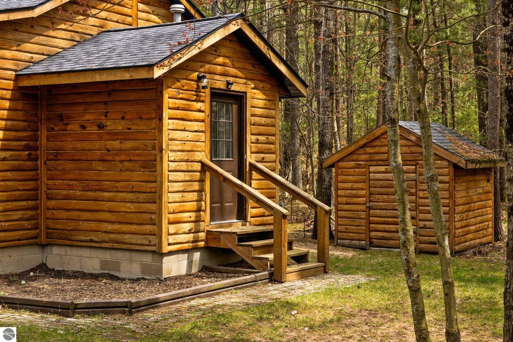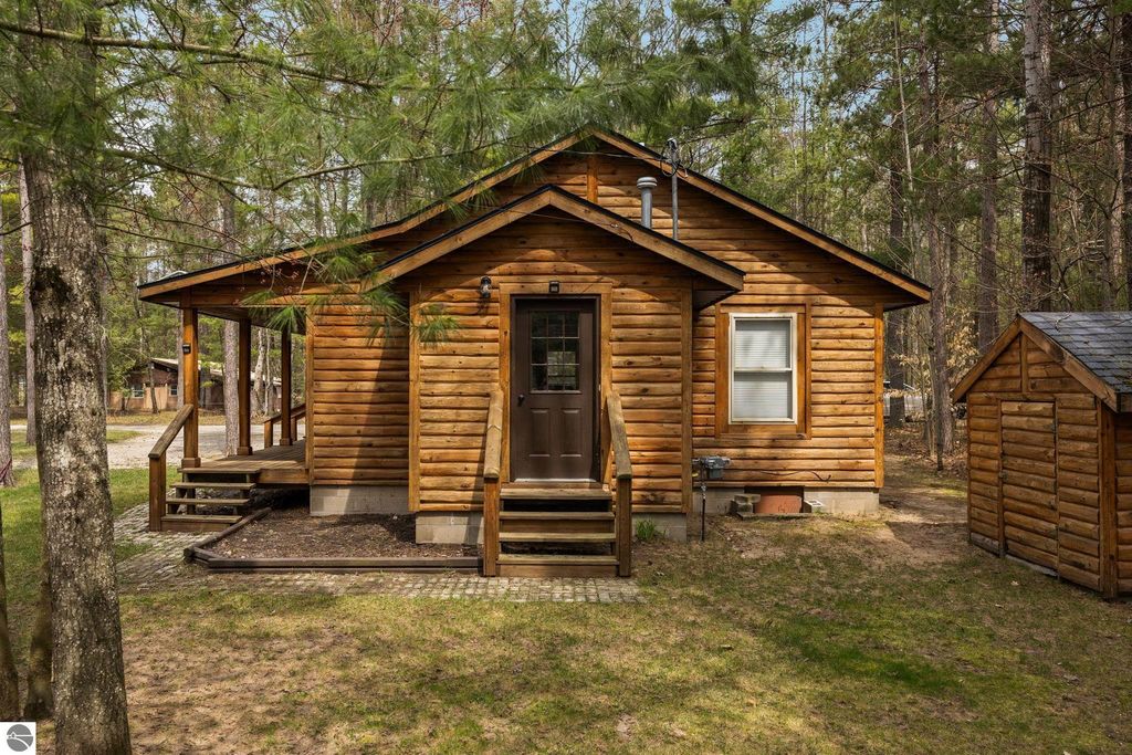 This year round 3 bedroom, 1 bath home or up north cabin is renovated and in move-in condition, offering the perfect blend of comfort and location. Featuring an open floor plan with a cozy fireplace, spacious bedrooms, and a dedicated laundry room area with newer washer and dryer, this home is designed for easy living. The interior includes newer carpet and luxury vinyl plank flooring, stainless steel appliances, and fresh paint. The kitchen features updated countertops and backsplash, and the bathroom has an updated vanity and fixtures. Outside, the exterior was recently stained and the property includes two storage sheds and a fire pit area, perfect for enjoying evenings up north. Start your day with a quiet morning sipping coffee from the covered front porch. Ideally located within walking distance to Bear Lake, with easy access to nearby trails for year-round recreation right from your doorstep.