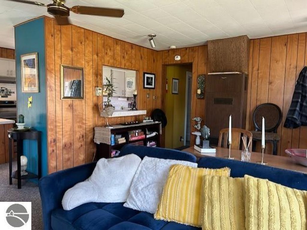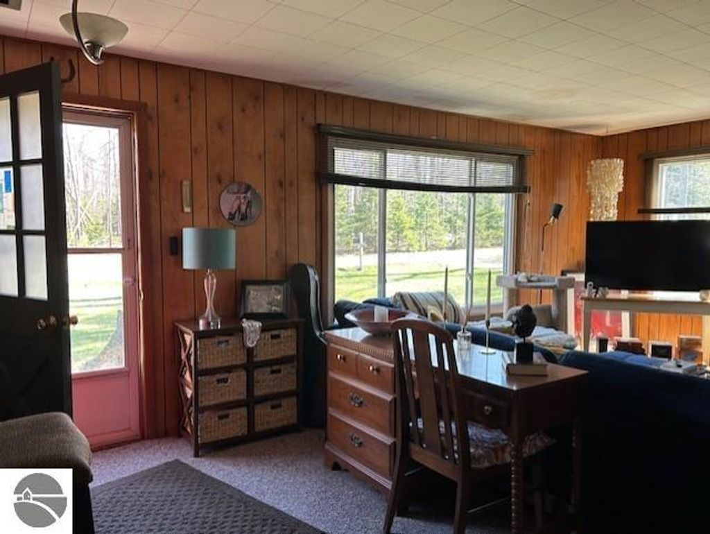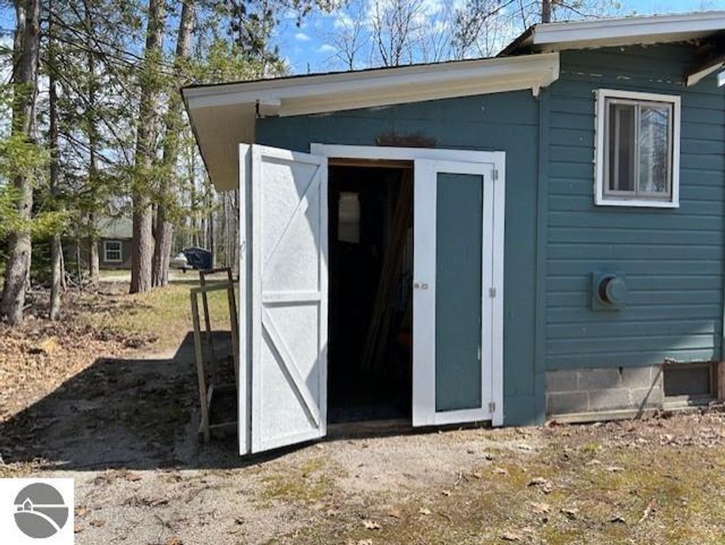 UP-North living at its best! This adorable cottage or year-round home has an artistic touch making this property fun and inviting! Step inside to the enclosed porch that offers the perfect space for enjoying your morning coffee! The instant you walk into the home you will feel the nice open space with fantastic natural lighting! Many of the windows have recently been replaced. The kitchen has had several upgrades with freshly painted cabinets, newer ceramic backsplash and the stainless appliances which are included. The dining space is more than adequate and currently duals as an office workspace! The pops of color here and there give the perfect accent keeping the space comfortable and interesting! Enjoy cozying up to the Blaze King wood burner on those chilly nights! There are currently 3 bedrooms, one is being used as an artists studio, the second as a grand walk-in closet/dressing room and the third fits a queen size bed and has a full-sized closet. The full bathroom has a space saving barn door; the room is bright and features newer pine flooring! The laundry area has a utility sink and includes the washer and dryer! There is an attached workshop area just off the laundry area for your workbench and tools. There are also two additional sheds for all your storage needs. This Up-North retreat is located on a double lot and has a recent improved gravel driveway. You will surely love sitting out on the patio for a cook-out or having fun gathering around the campfire with friends! There is a retractable awning that will partially shade you when needed. Since these sellers live here year-round, they had the pipes in the crawl space insulated. Enjoy the 4 seasons if you choose, the deer and other wildlife that are plentiful! Lost Lake Woods Club is a unique opportunity with many amenities including 5 lakes, lodge accommodations, a golf course, horseback riding, shooting ranges and more! Membership required to purchase, well worth it!